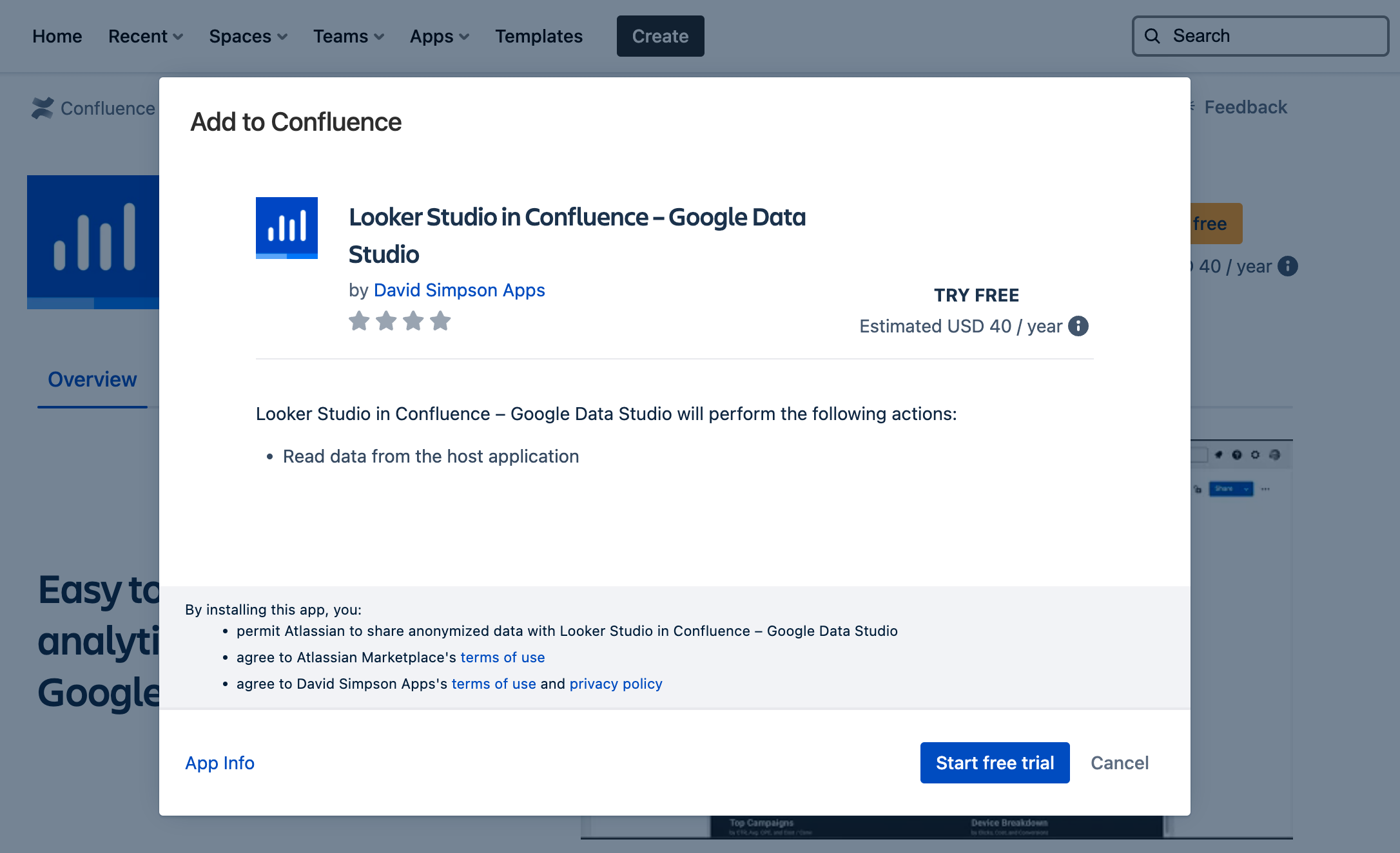 In the popup, you attempt to start a free trial by pressing the Start free trial button