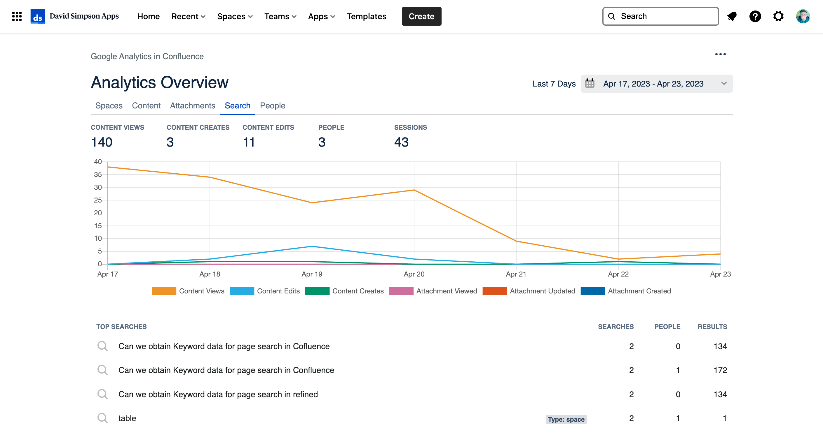 Can we obtain keyword data for page searches in Confluence?