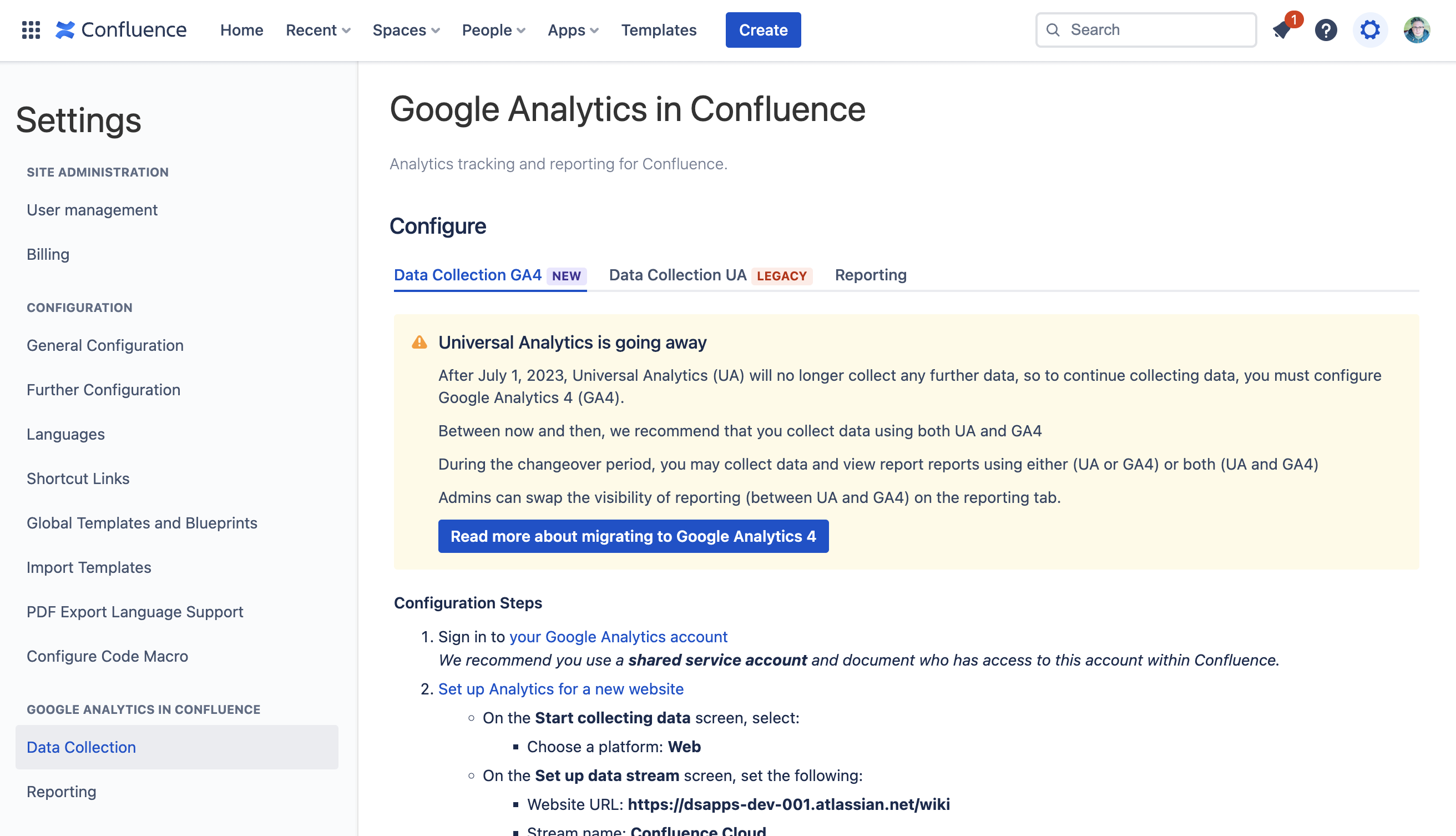 Back in March 2023, we released a new version of Google Analytics in Confluence to support Google Analytics 4 (GA4).