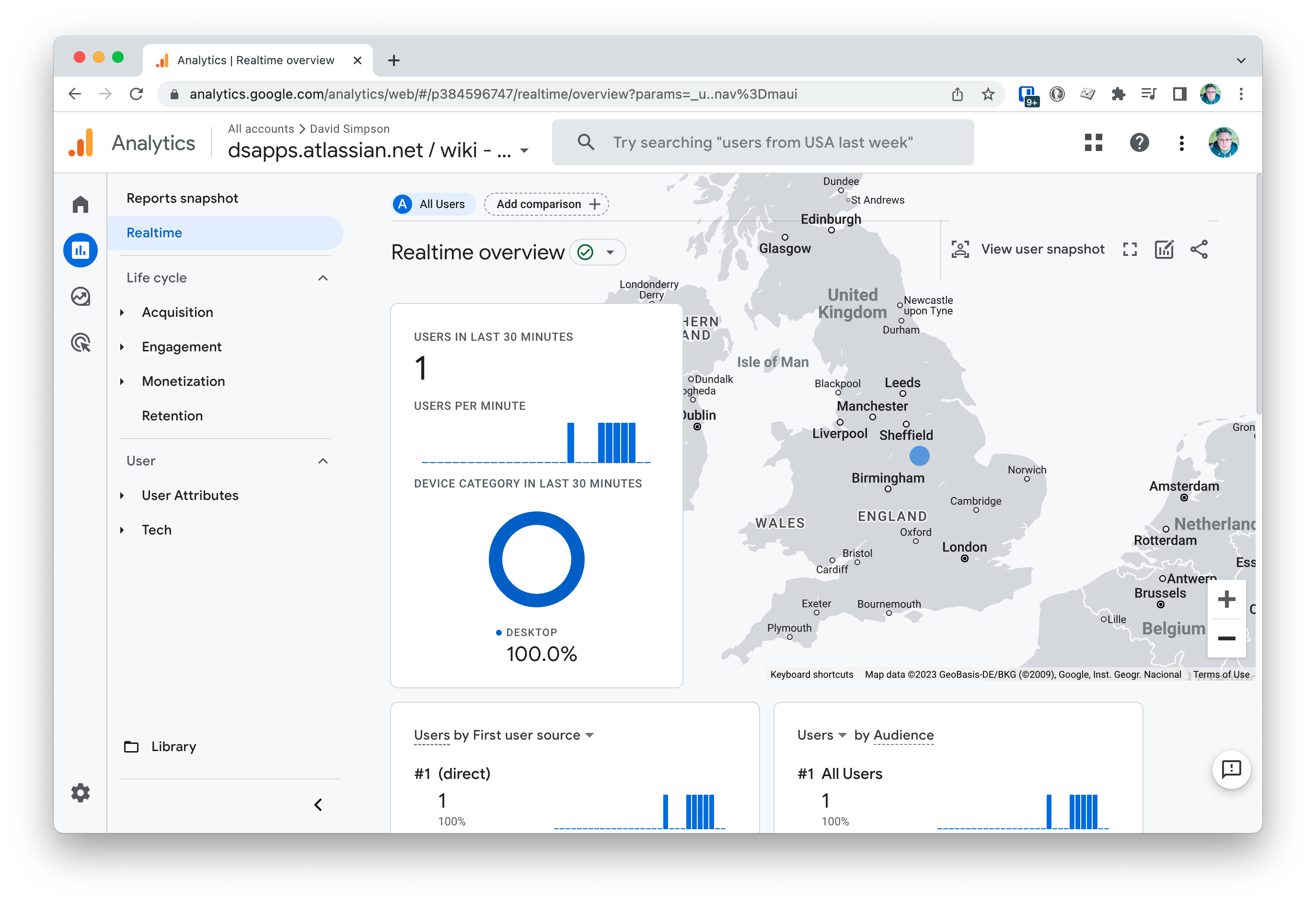 In Confluence, browse some pages after setting up Google Analytics tracking