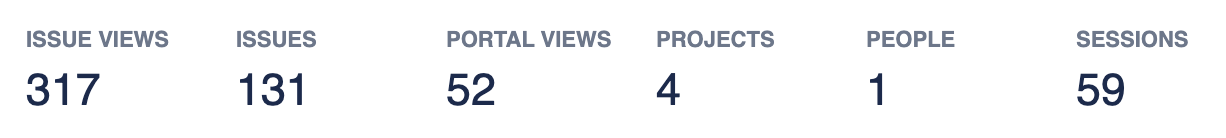 Issue Screen Views, No. of Issues Viewed, Portal Views NEW , No. of Projects Viewed, People & Sessions