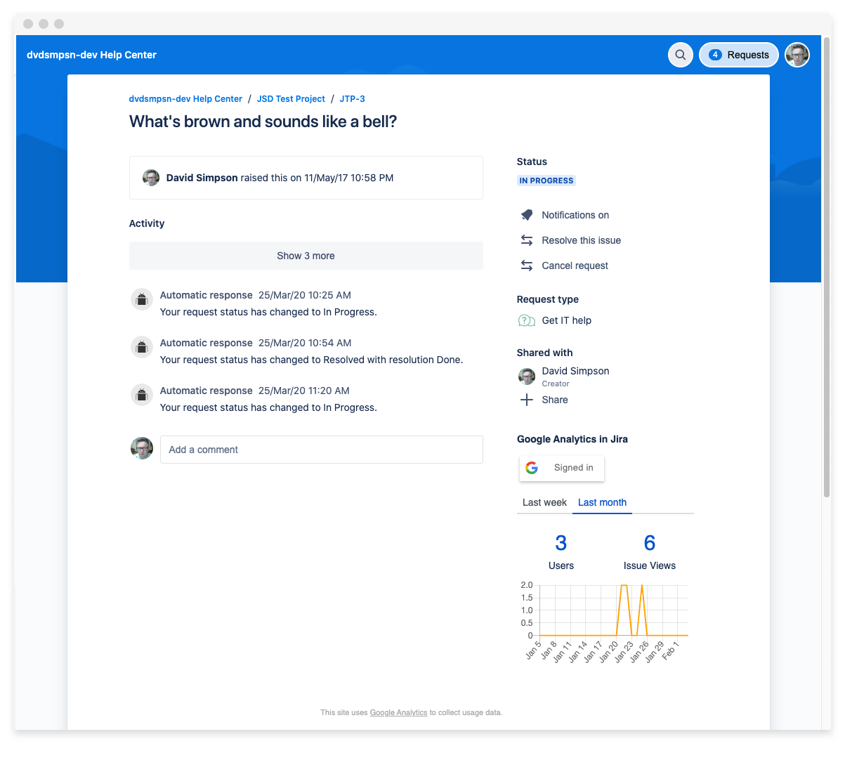 The Portal Issue Analytics screen is available to Jira administrators only.