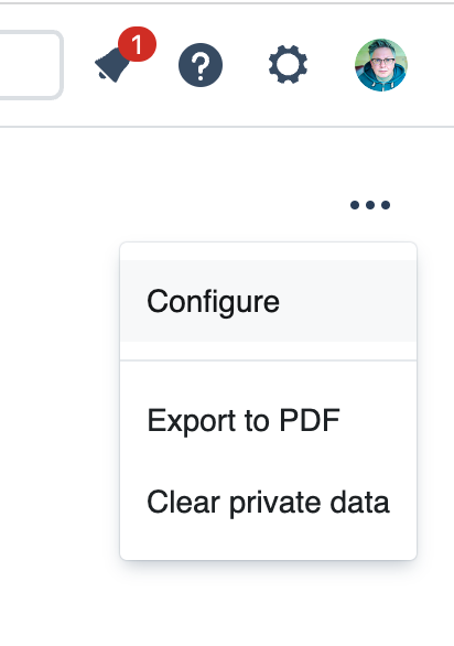 If the app has previously been configured, select Configure from the “•••” / Tools menu in the top right corner: