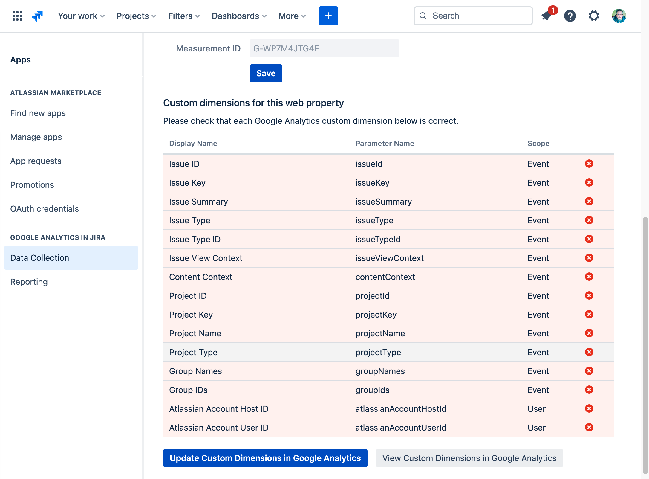 For the app to work correctly, you have ensure that the custom dimensions have been created.