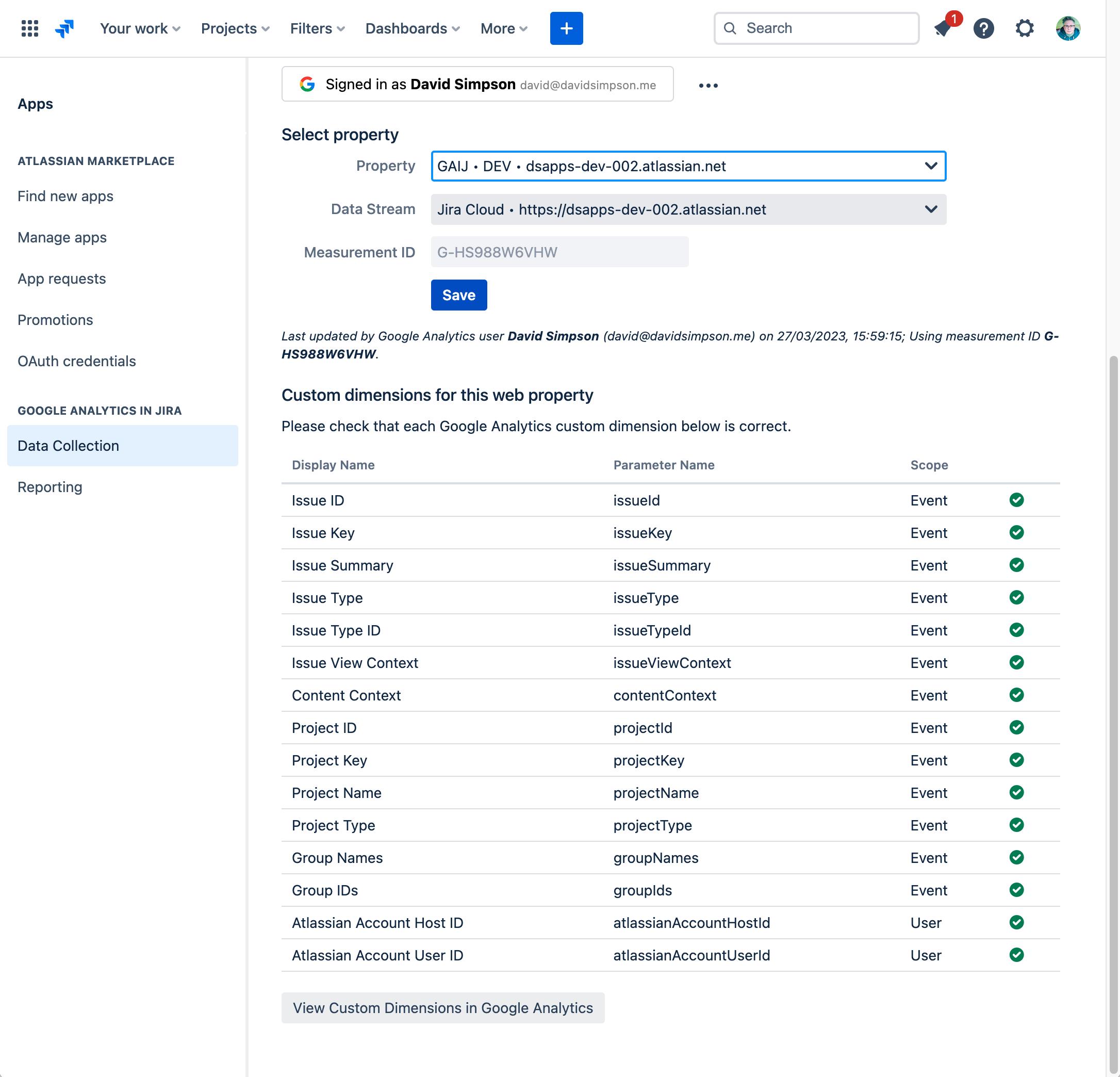 When all custom dimensions have been created, you see a nice green column of checks ![]()