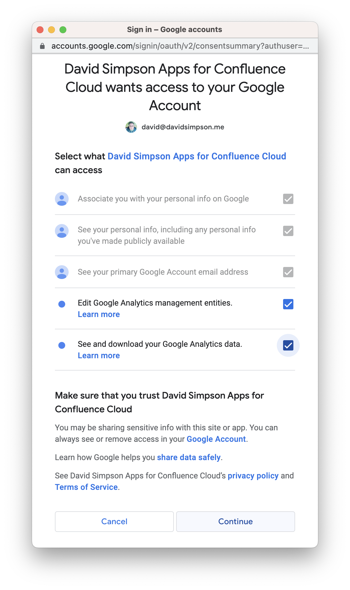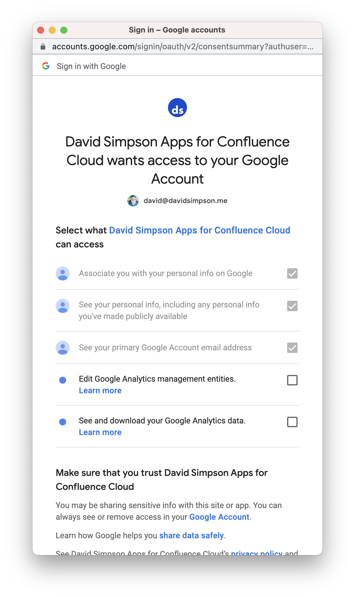 Each screen will say David Simpson Apps for Jira Cloud, rather than “David Simpson Apps for Confluence Cloud” shown in the screenshots below.
