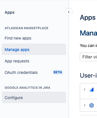 Then select Configure below the Google Analytics in Jira heading in the left menu
